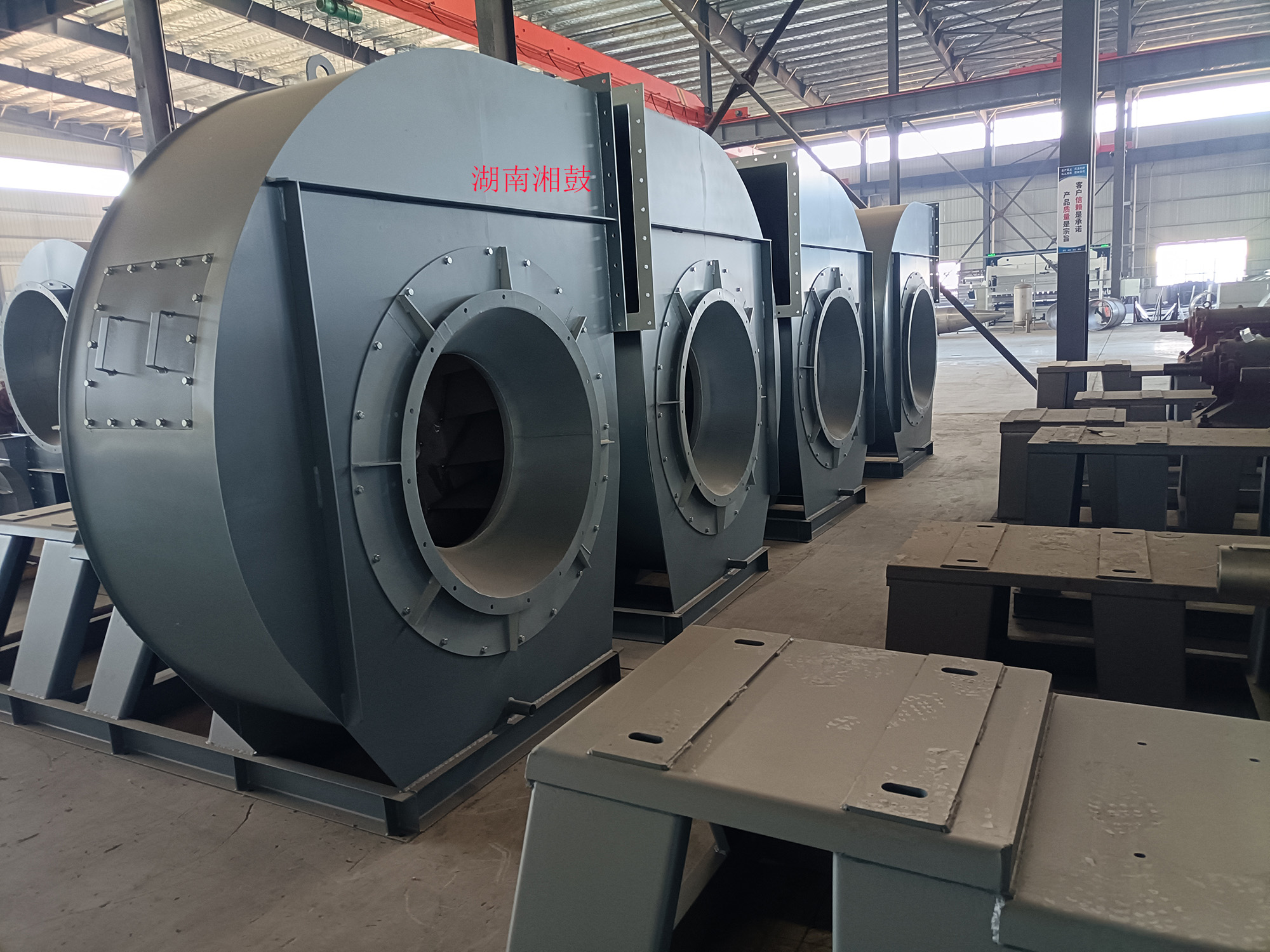 湖南湘鼓鼓風機制造有限公司(長沙第二風機廠)原廠建于1978年,機械部定點生產風機的企業,原設有長沙地區風機檢測站。于2016年重組遷入湖南益陽。公司占地32畝,擁有各類主要加工檢測設備100余臺套,是目前湖南省具一定規模的鼓風機及配件制造廠家,F已生產離心式通風機(又稱離心風機)和羅茨鼓風機二大系列,按用途分為高溫風機、不銹鋼高溫風機、不銹鋼離心通風機、造紙通風機、襯膠防腐風機、除塵風機、脫硫塔風機、增壓風機、鍋爐風機、掃路車風機、貼陶瓷耐磨風機、窯爐風機(磚窯風機)、煤粉灰輸送風機、燃燒器助燃鼓風機、斜槽高壓風機、化鐵爐風機、造氣鼓風機、養殖增氧風機、污水處理曝氣鼓風機、脫硫氧化鼓風機、氣力輸送鼓風機、印刷送風機、電鍍槽鼓風機等三十多個系列通用型及十多個系列特種型風機,按國標型號分:4-72,T4-72,4-68,4-79,9-19,9-26,8-09,9-12,C6-48,C6-46,C4-73,GY4-68,GY4-73,GY6-51,GY8-39,GY9-38,GY6-30,GY6-48,GY6-41,GY5-51,GY5-47,GY5-48,GD30K2-12,以及XG80-500口徑的羅茨鼓風機。更多產品詳細介紹在首頁菜單檔上的產品中心    http://www.cshfhb.com/pclass/?classa=1